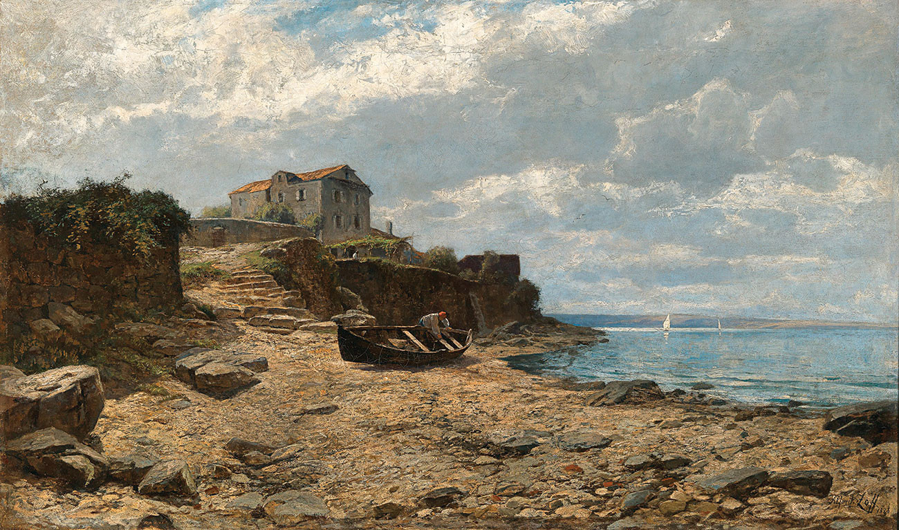 репродукция морского пейзажа художника Цоффа Альфреда — "Рыбаки на берегу Валаска"