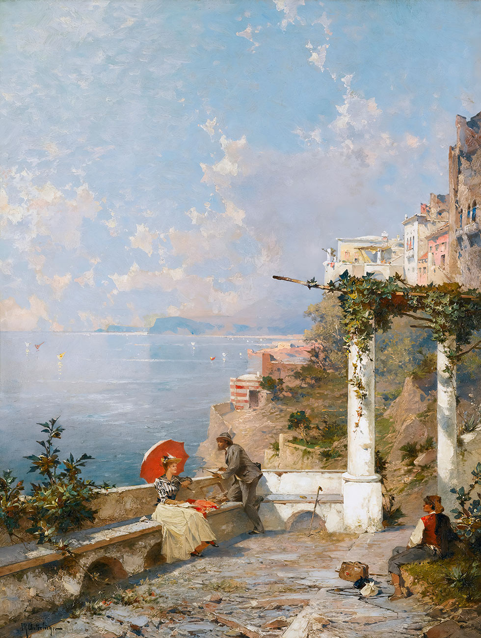 ₴ Репродукция пейзаж "На веранде, на заднем плане Неаполь"