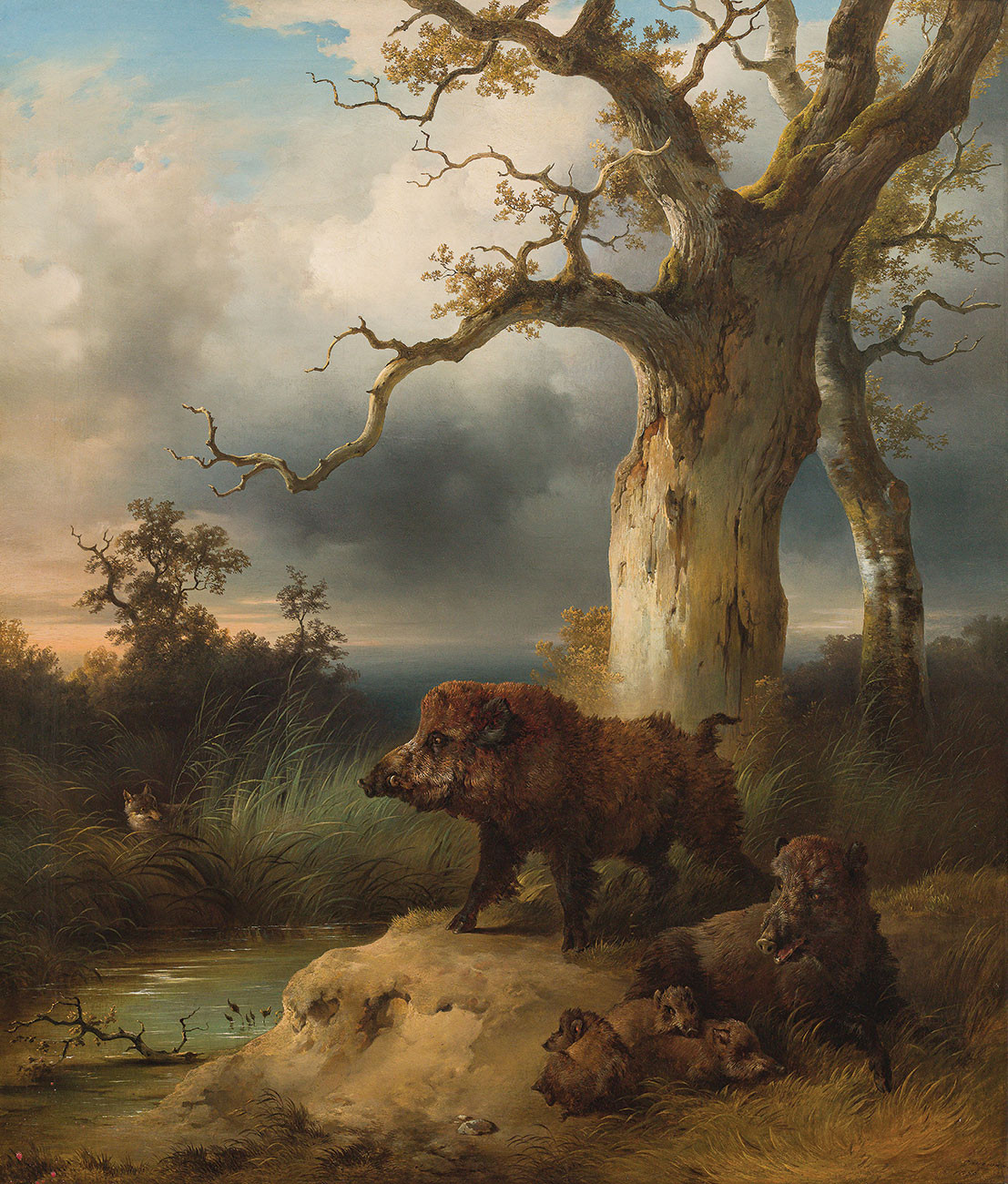 репродукция картины известного художника Вальдмюллера Фердинанда — "Семейство кабанов"