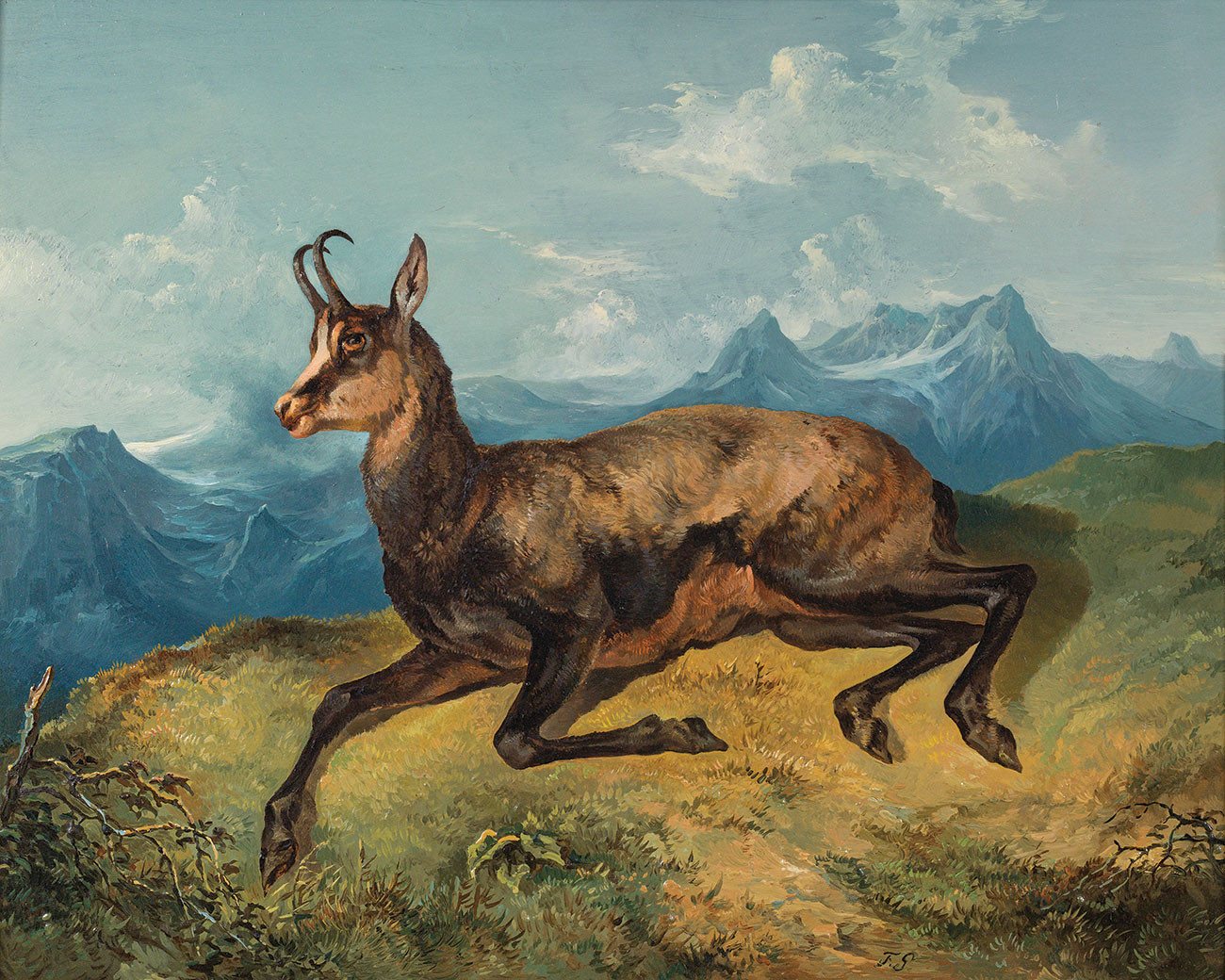 репродукция картины известного художника Вальдмюллера Фердинанда — "Серна на фоне гор"