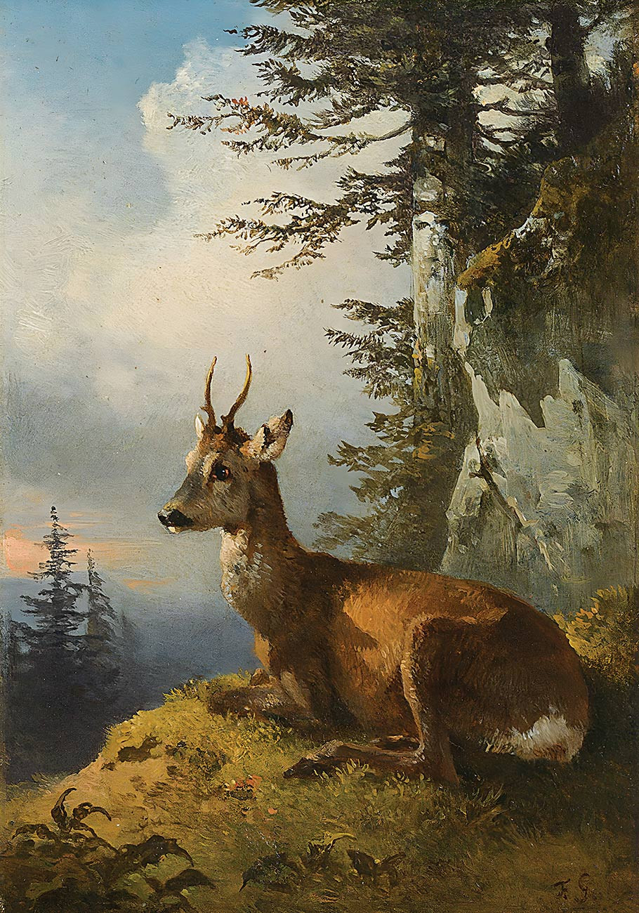 репродукция картины известного художника Вальдмюллера Фердинанда — "Лежащий самец косули"