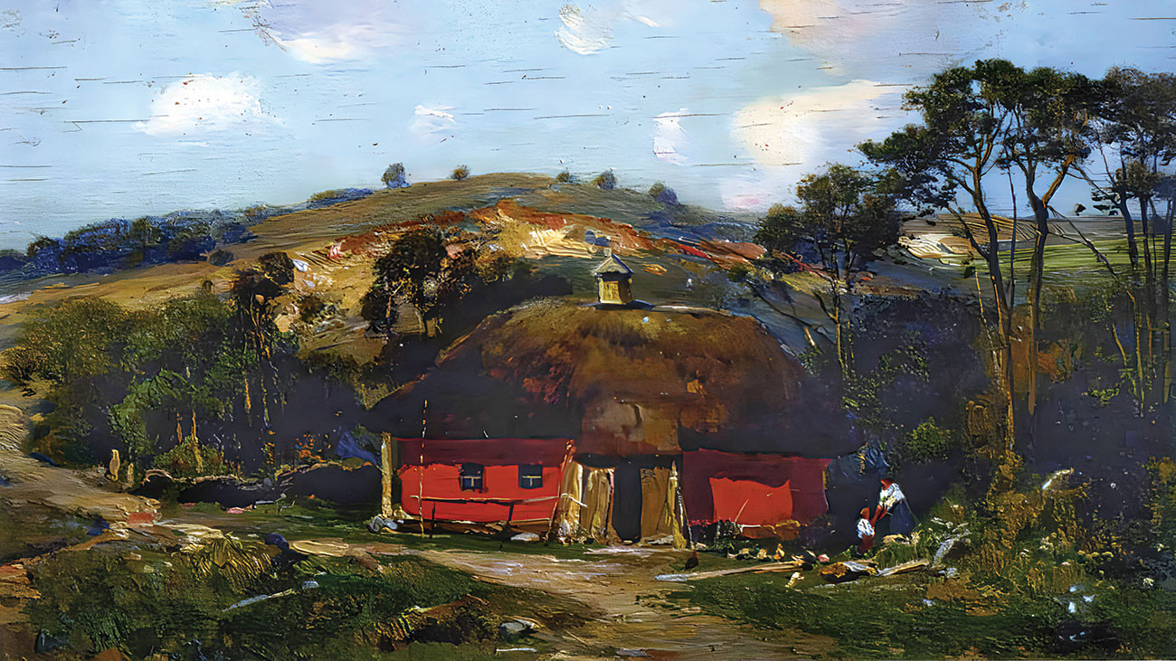 репродукция пейзажа известного художника Васильковского Сергея — "Красная хата"