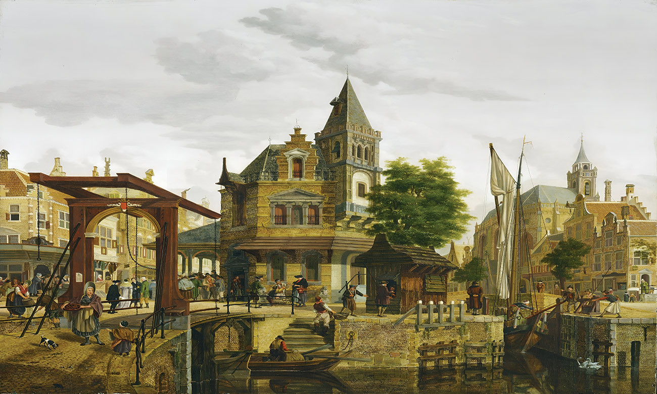 ₴ Репродукция городской пейзаж "Голландский город вдоль канала" - Верхейен Хендрик Ян