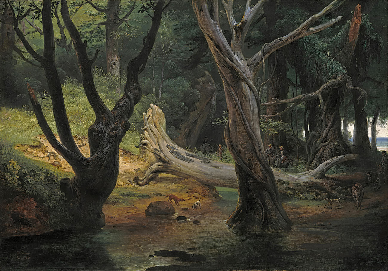 репродукция картины художника Верне Ораса — "Отправление на охоту в Понтийские болота"