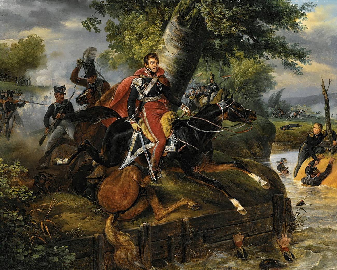 репродукция картины художника Верне Ораса — "Смерть князя Понятовского 19 октября 1813 года"