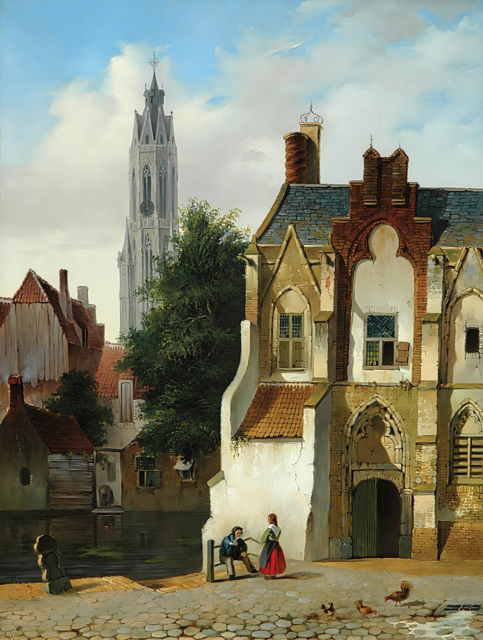 ₴ Репродукция городской пейзаж "Вид Делфта с фигурами летом" - Вертин Питер Герардус