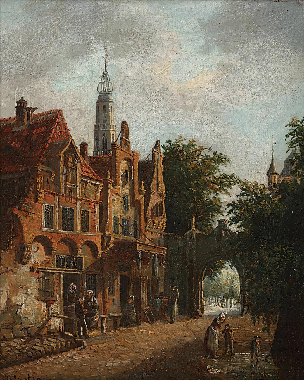 репродукция городского пейзажа художника Вертина Питера — "Деревенская сцена"