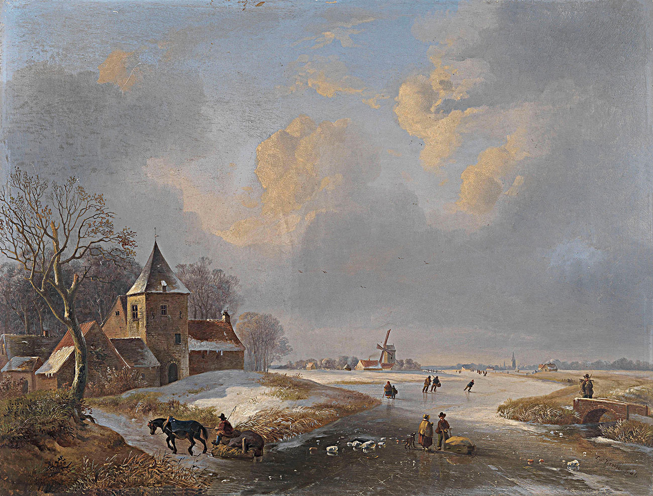 репродукция пейзажа художника Верви Луи-Пьера — "Зимний пейзаж с конькобежцами"
