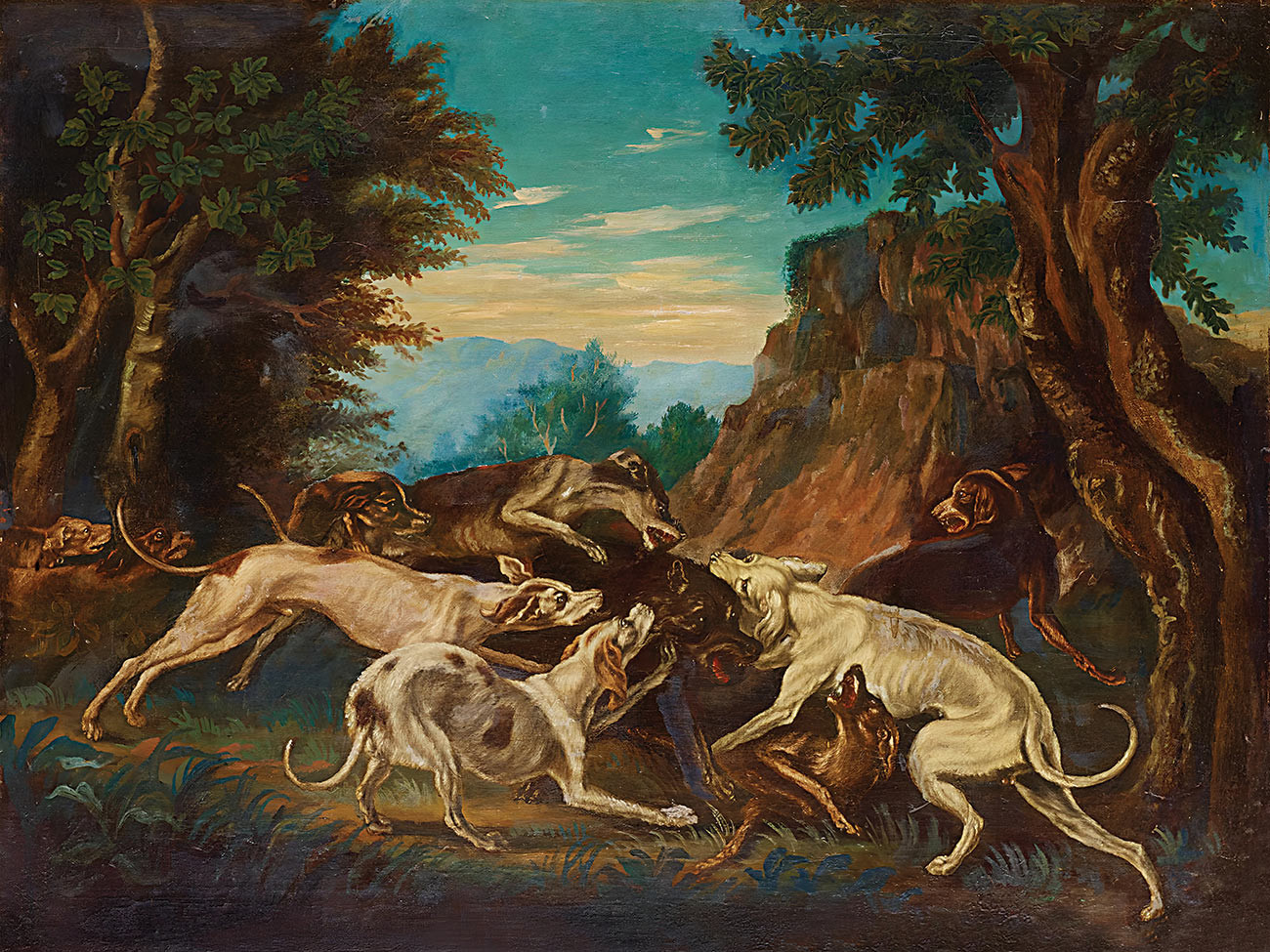 ₴ Репродукция натюрморт известного художника "Волк подвергся нападению собак" - Вос Пауль де