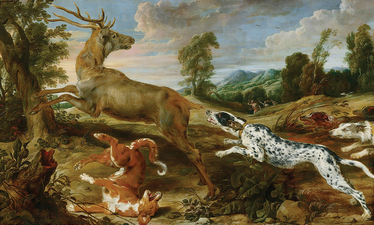 репродукция картины известного художника Воса Пауля — "Охота на оленя"