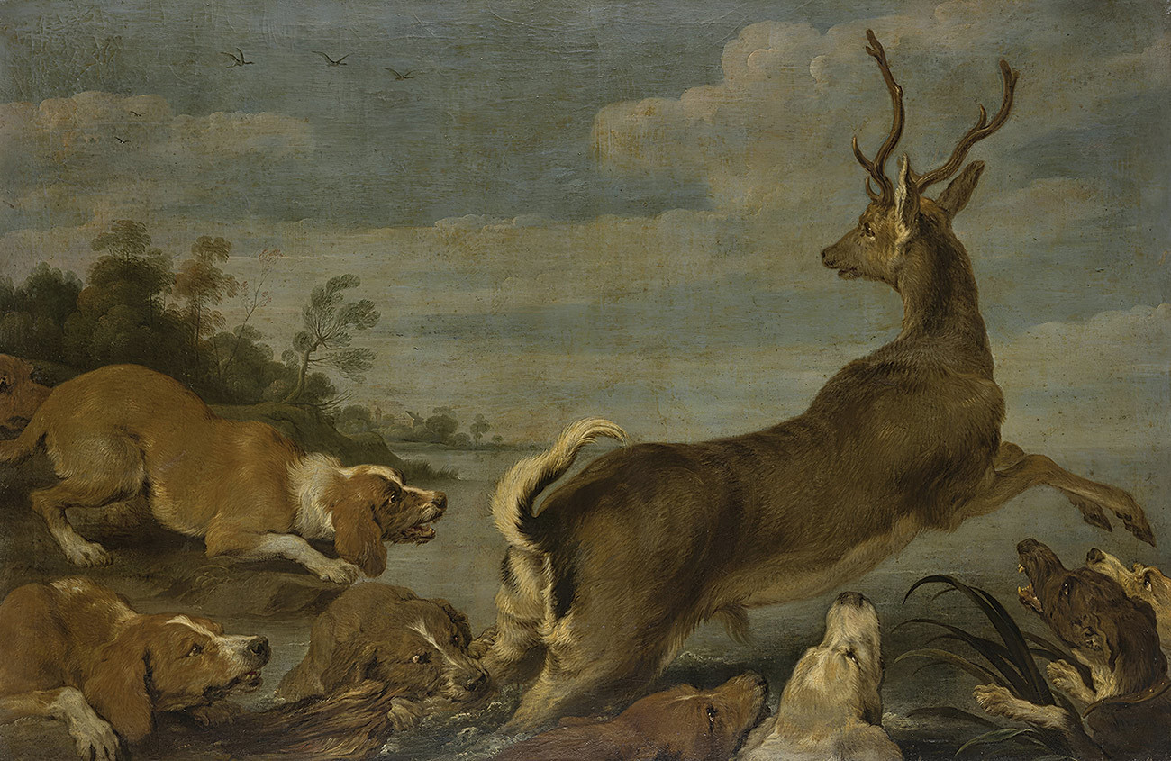 репродукция картины известного художника Воса Пауля — "Охота на оленя"