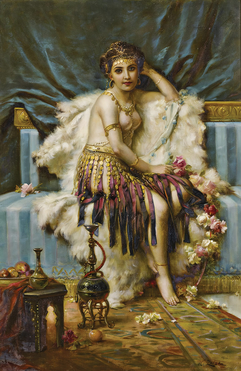 ₴ Репродукция бытовой жанр известного художника "Красота с цветами в интерьере" - Зацка Ханс