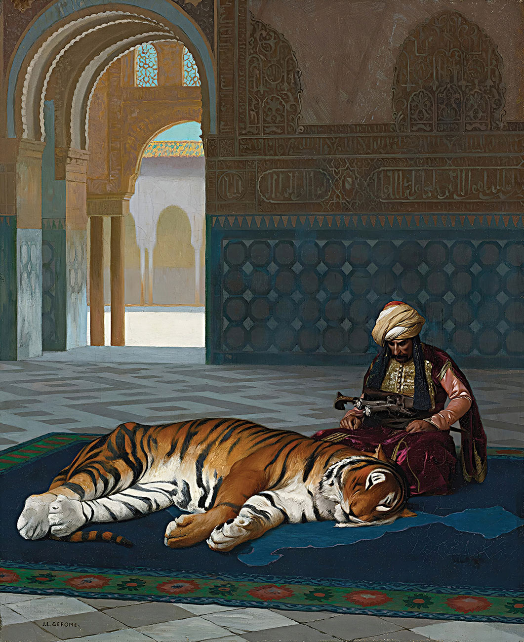 репродукция картины известного художника Жерома Жан-Леона — "Тигр и Страж"