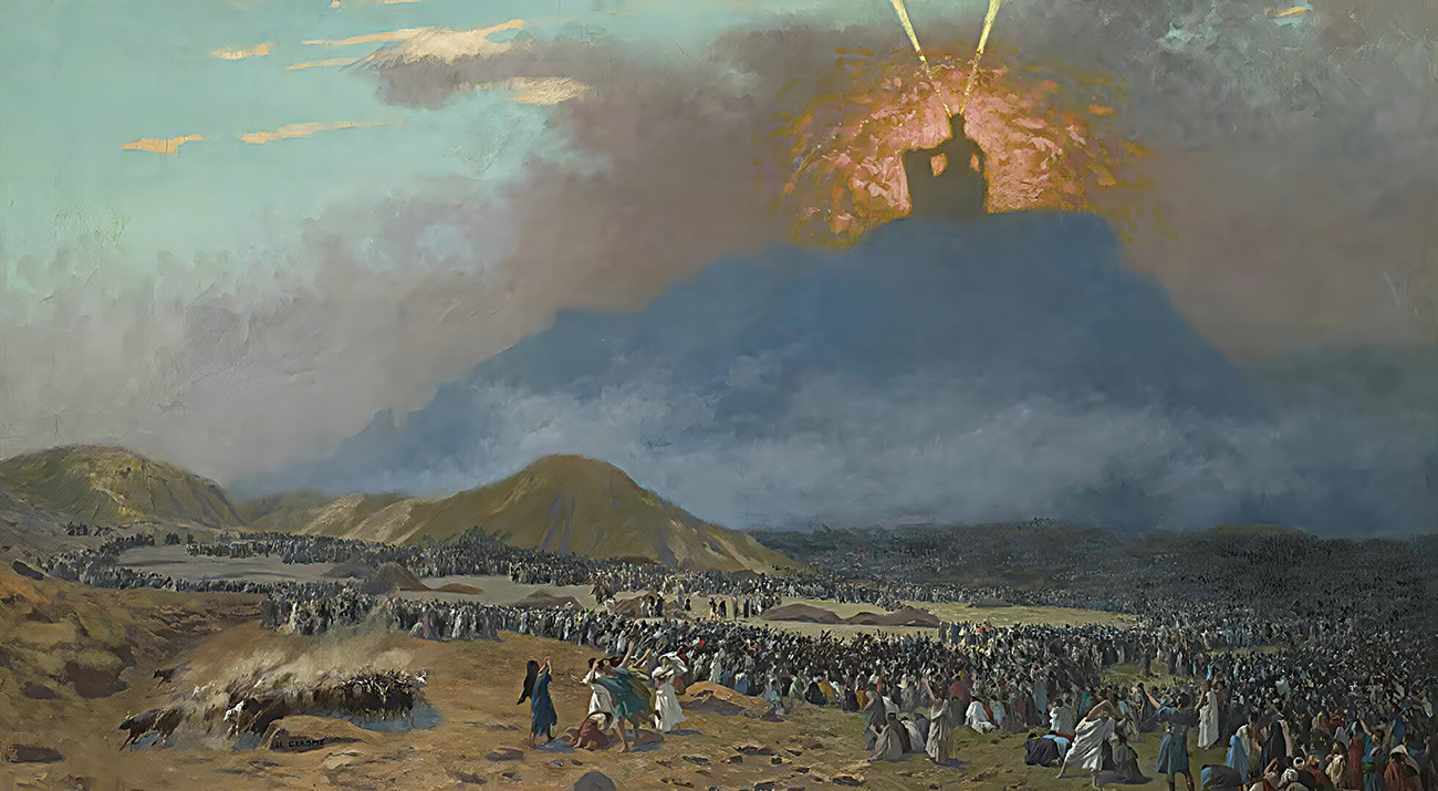 репродукция картины известного художника Жерома Жан-Леона — "Моисей на горе Синай"