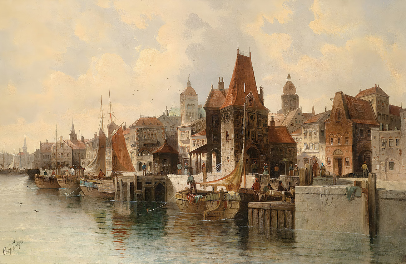 ₴ Репродукция городской пейзаж "Город на реке" - Зиген Август фон