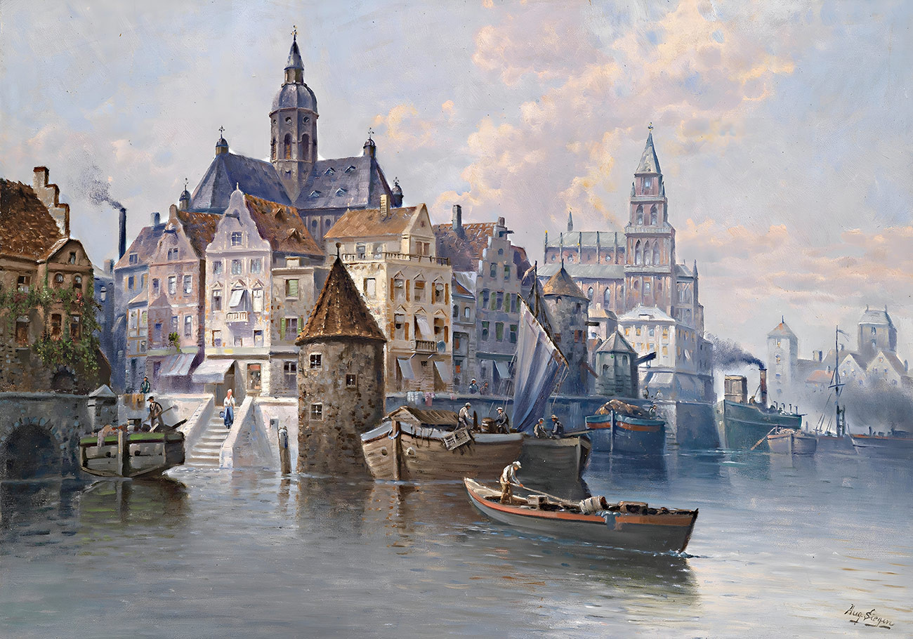 ₴ Репродукция городской пейзаж "Каприччио, вид на гавань" - Зиген Август фон