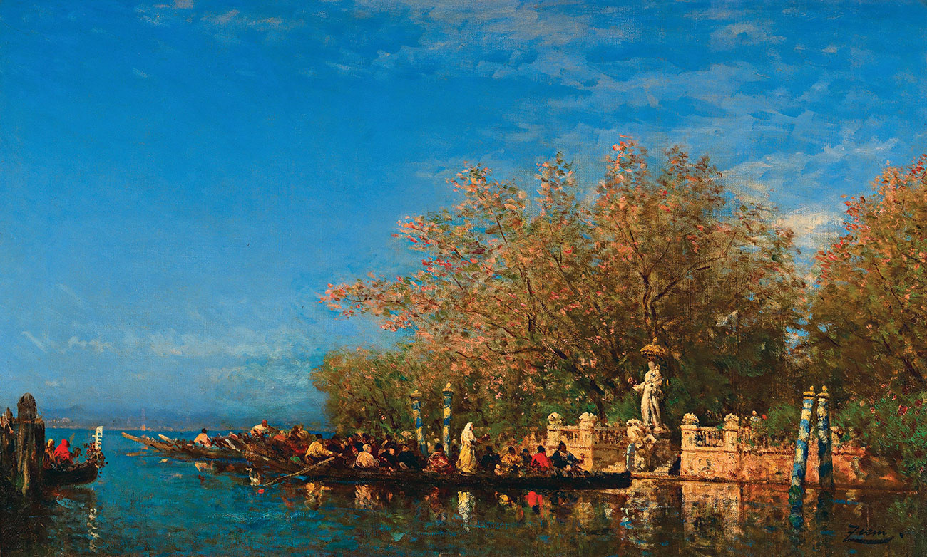 репродукция морского пейзажа художника Зима Феликса — "Венеция, поездка на гондоле в Мадонну у входа во Французский сад"