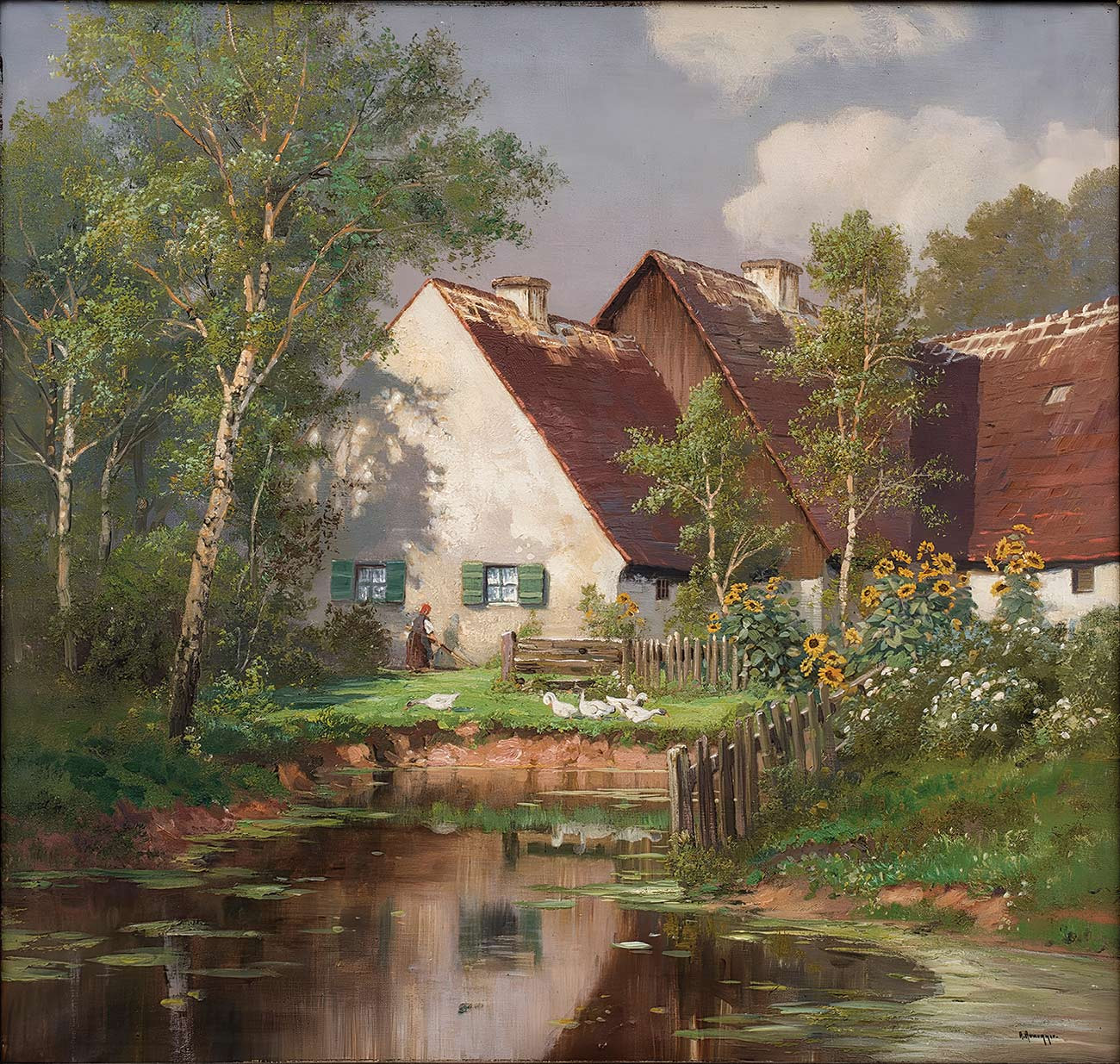 ₴ Репродукція краєвид відомого художника "Баварський фермерський будинок" - Арнегер Алоїс