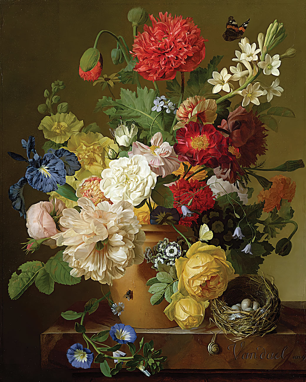 придбайте репродукцію квітковий натюрморт відомого художника Даля Яна — "Натюрморт з квіткою на мармуровому бордюрі"