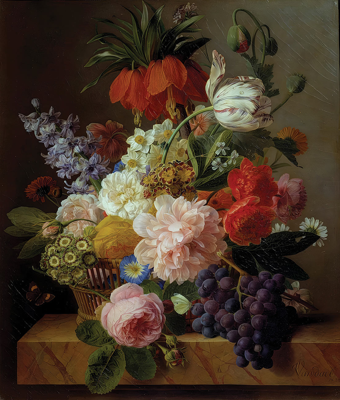 придбайте репродукцію квітковий натюрморт відомого художника Даля Яна — "Цветы и фрукты"