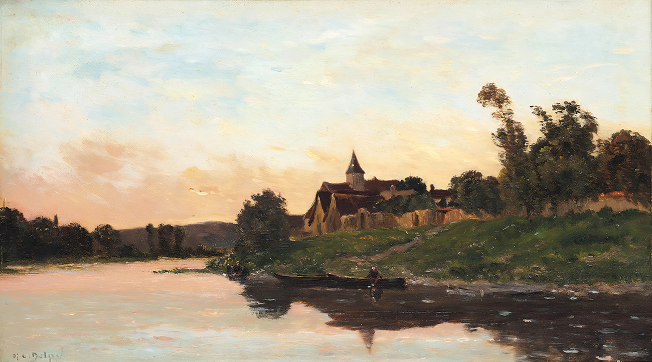 ₴ Репродукція краєвид "Рибалка на річці в кінці дня" - Дельпі Іполит Каміль