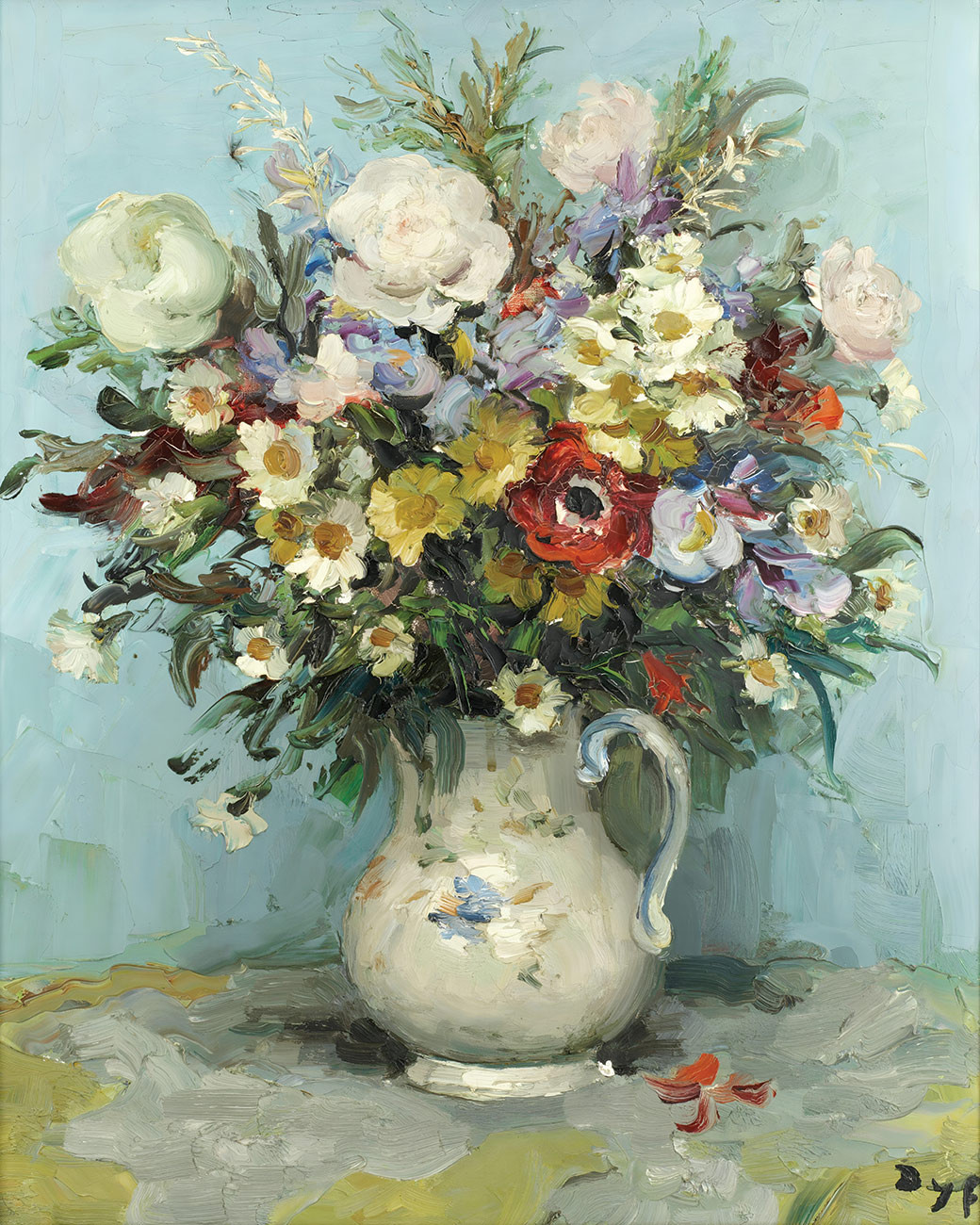 ₴ Репродукція квітковий натюрморт "Троянди та роман польовий" - Діф Марсель