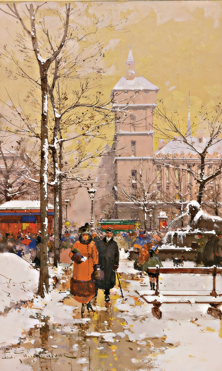 ₴ Репродукція міський краєвид відомого художника "Площа Шатле та Консьєржері під снігом" - Гальєн-Лалу Ежен