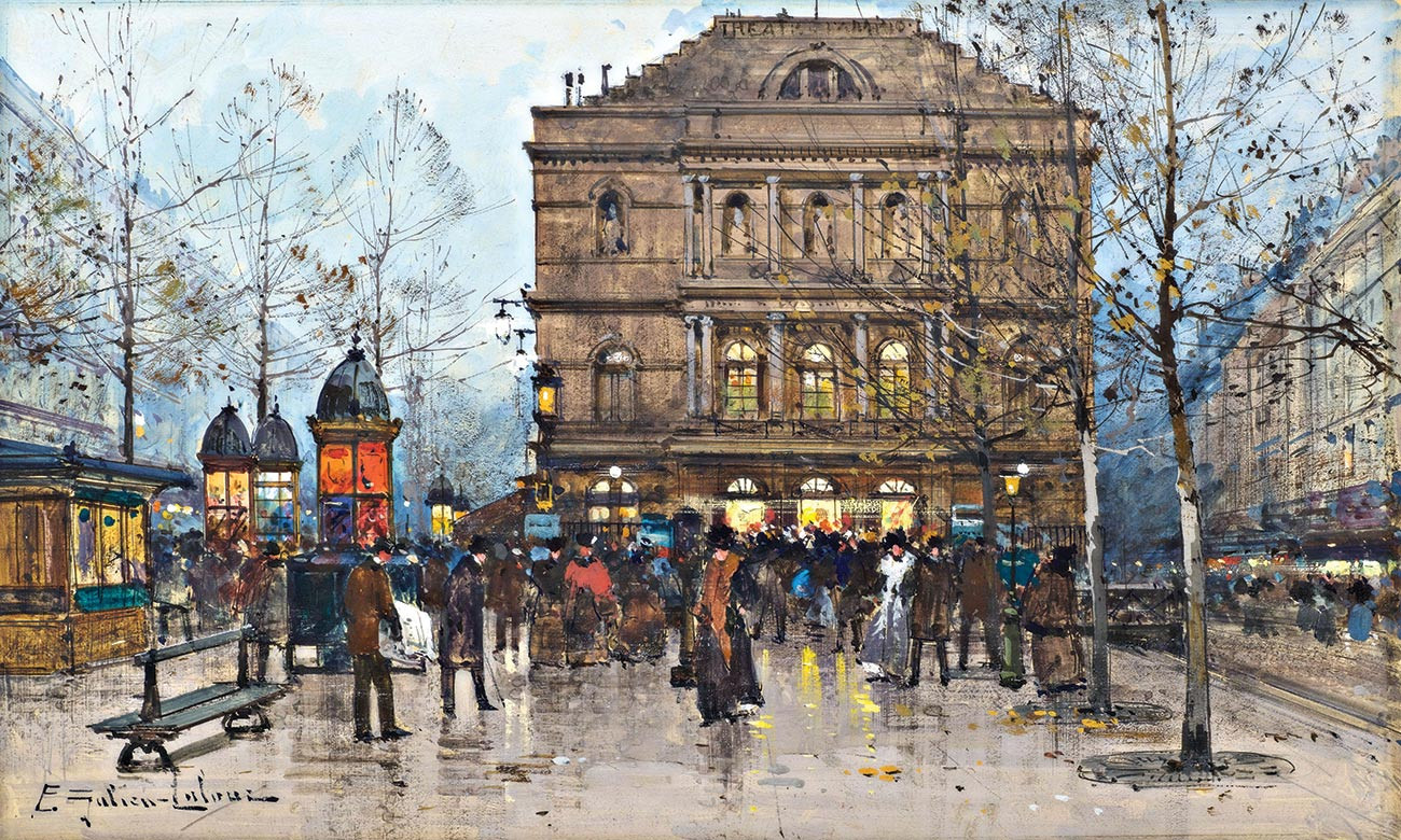 ₴ Репродукція міський краєвид відомого художника "Вихід з театру Амбігу-Комік, бульвар Сен-Мартен, Париж" - Гальєн-Лалу Ежен