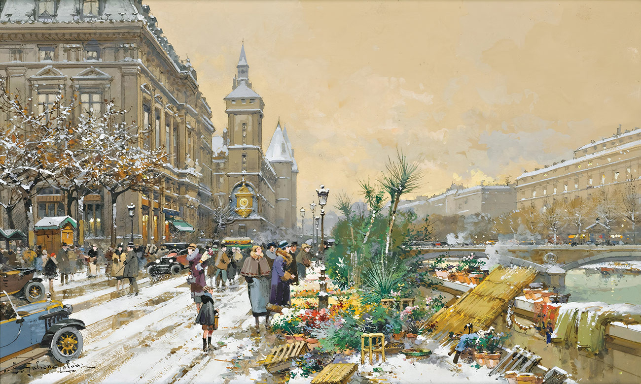 ₴ Репродукція міський краєвид відомого художника "Набережна Флер та Консьєржер" - Гальєн-Лалу Ежен