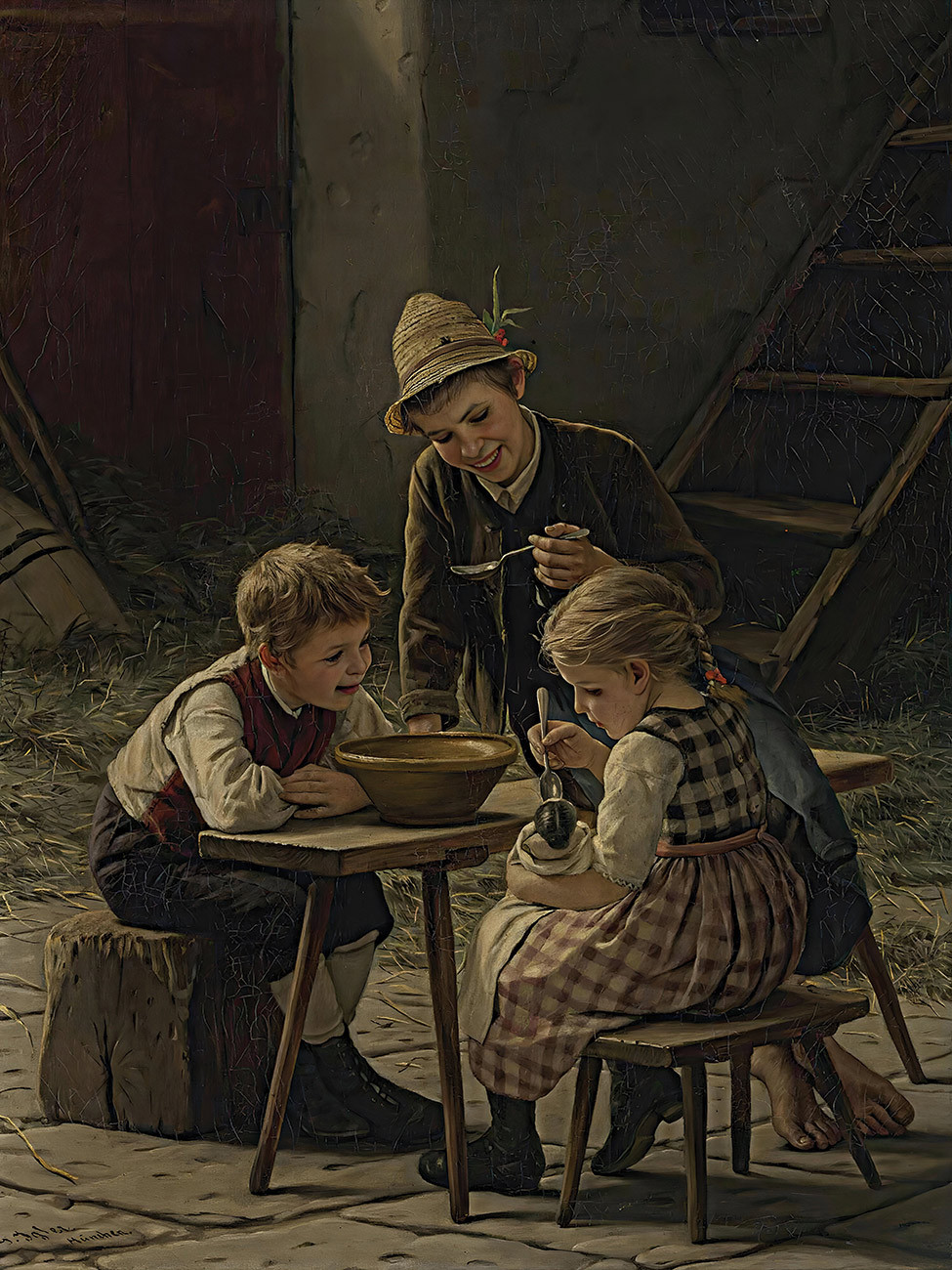 ₴ Репродукція побутовий жанр "Вечеря дитячої ляльки" - Іглер Густав