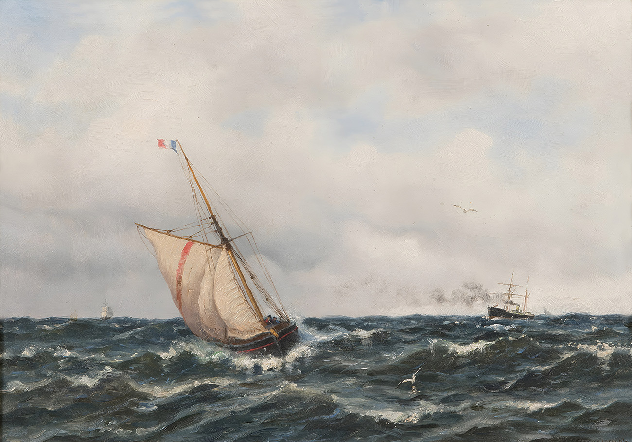 ⚓Репродукція морський краєвид "Кораблі у відкритому морі" - Клейнех Оскар