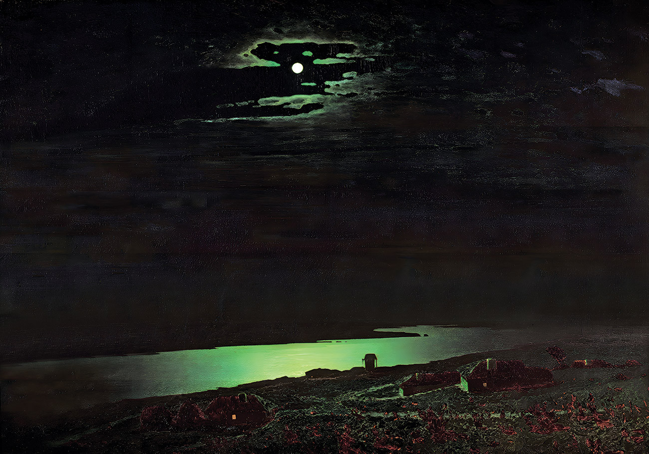 Блискучий сріблясто-зеленуватий диск місяця залив своїм таємничим фосфоресцирующим світлом занурену в нічний спокій землю. Він був такий сильний, що деякі глядачі намагалися заглянути за картину, підозрюючи, що там ліхтар або лампа. Але лампи не виявлялося, а місяць продовжувала випромінювати свій зачаровує, таємниче світло.
