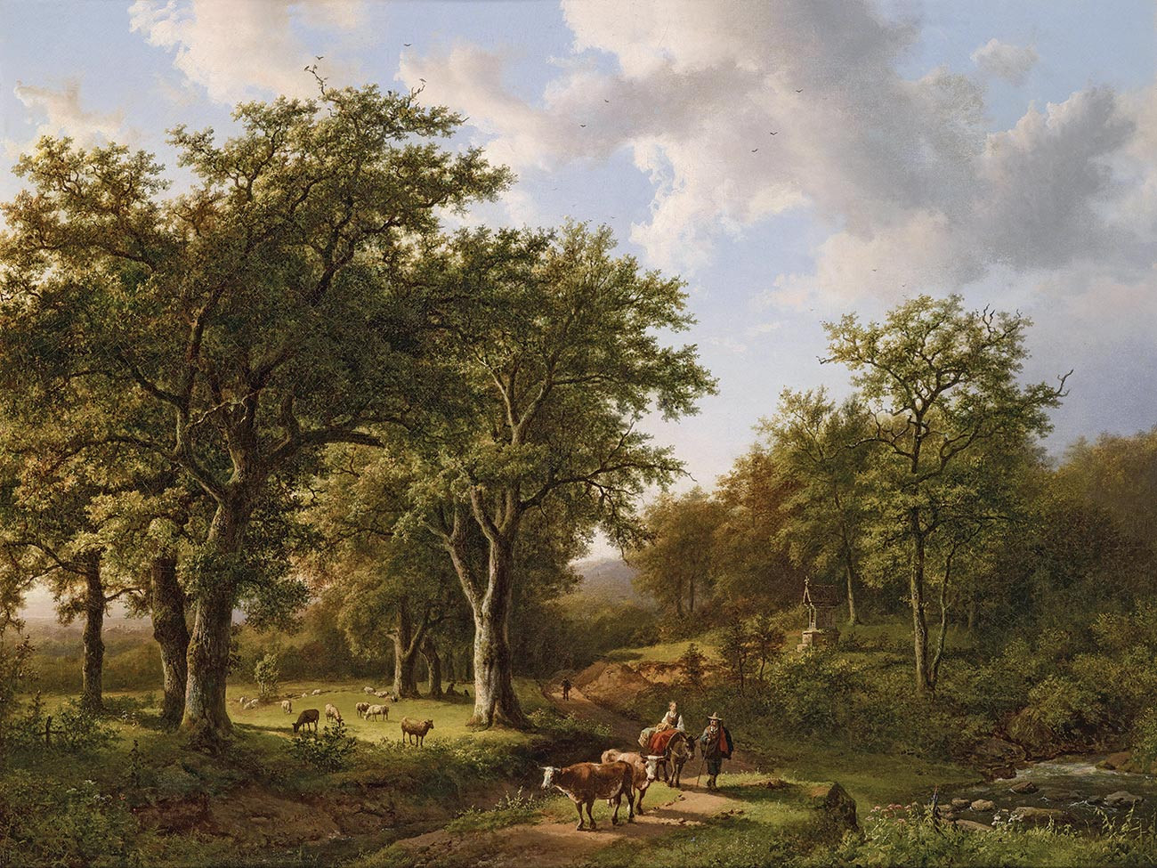 репродукція краєвиду відомого художника Куккука Баренда Корнеліса — "Лісовий краєвид з пастухами та худобою"