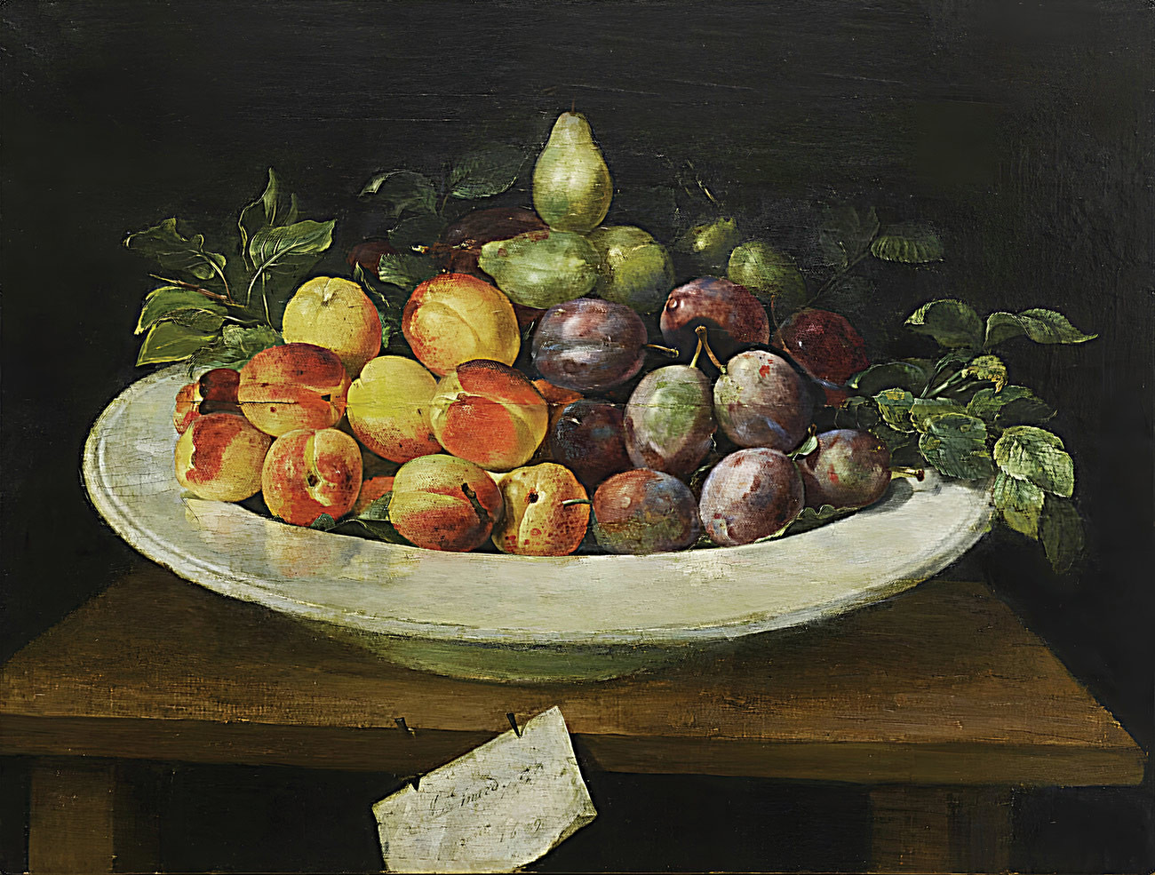 ₴ Репродукція натюрморт "Натюрморт з персиками та сливами" - Лінар Жак