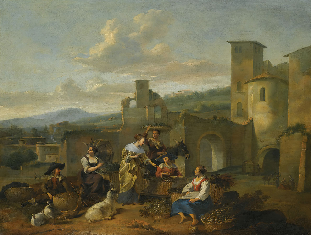 ₴ Репродукція краєвид "Італійський краєвид з продавцями овочів" - Моммерс Хендрік