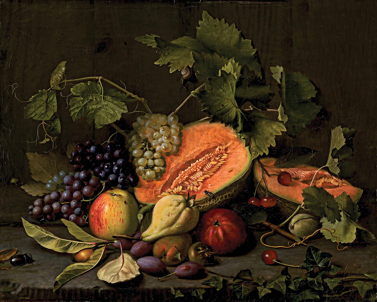 придбайте репродукцію натюрморт художника Оттесена Отто — "Натюрморт з динями та виноградом"