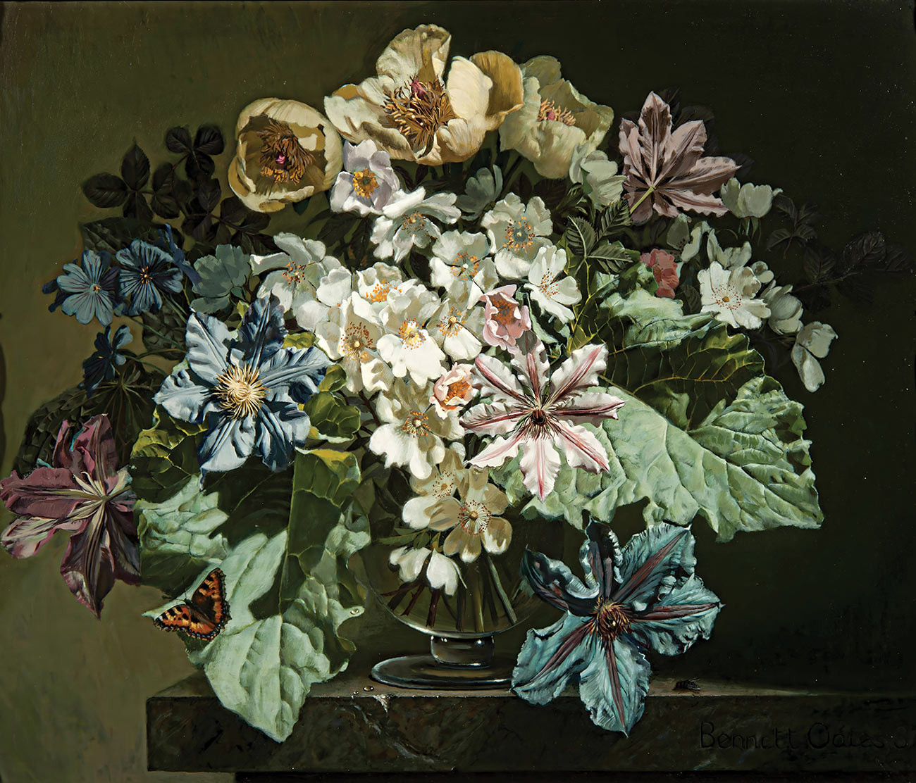 придбайте репродукцію квітковий натюрморт художника Оутса Беннетта — "Квіти та метелик-кропив'янка"