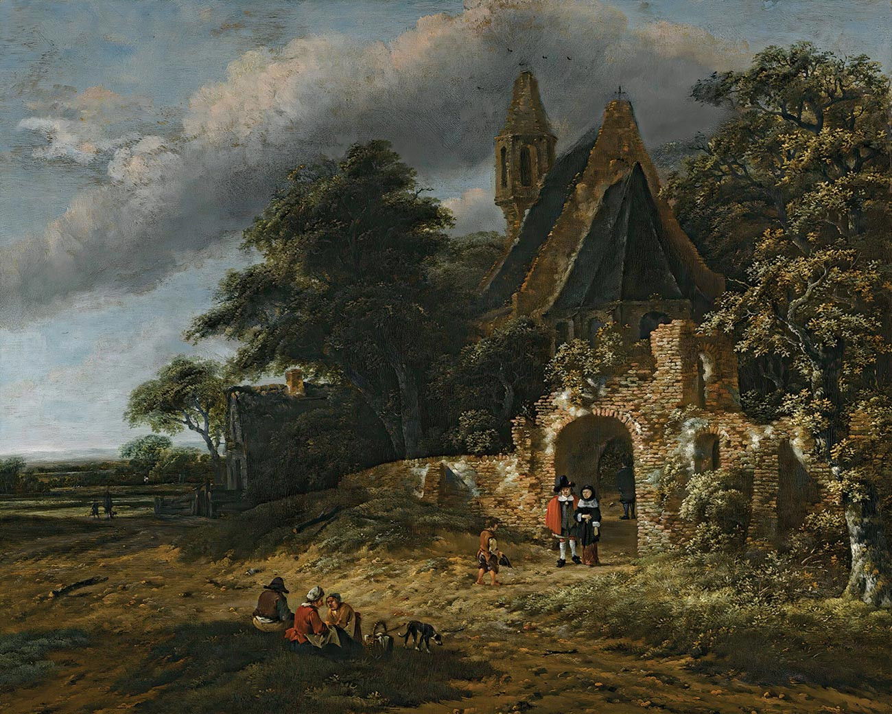 репродукція краєвиду художника Румбатса Саломона — "Краєвид з фігурами біля стін руїн церкви"