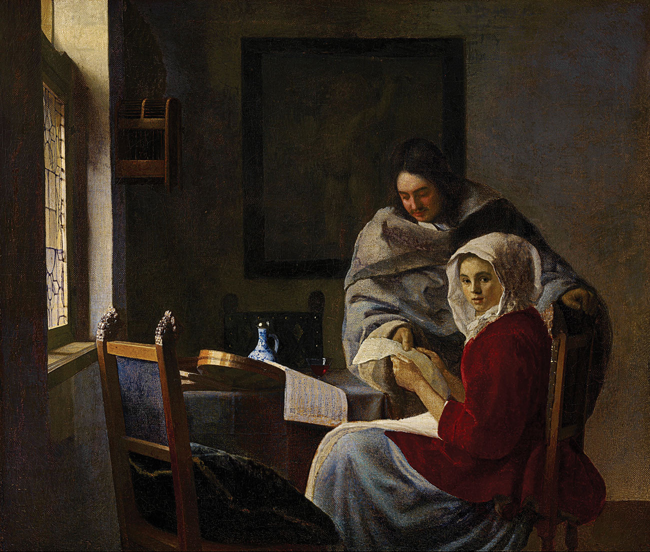 ₴ Репродукція побутовий жанр відомого художника "Дівчину перервали під час музичної гри" - Вермеер Ян