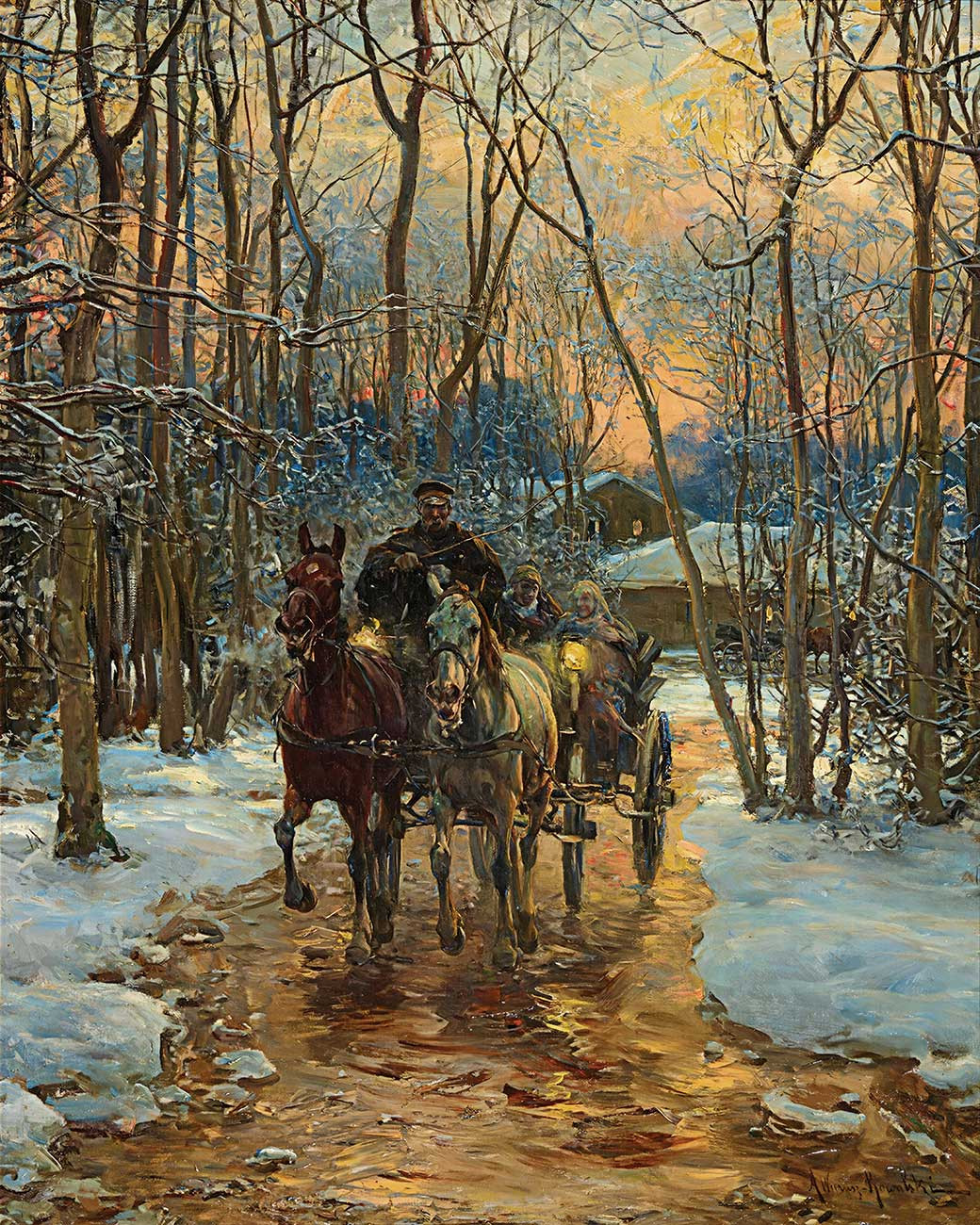 ₴ Репродукция бытовой жанр "Їзда у сутінках" - Веруш-Ковальські Альфред фон