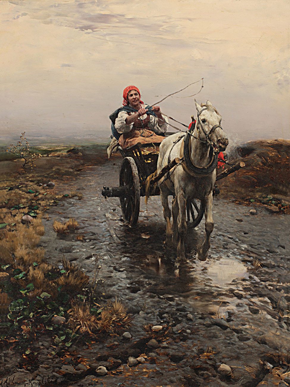 ₴ Репродукция бытовой жанр "Селянка на возі" - Веруш-Ковальські Альфред фон