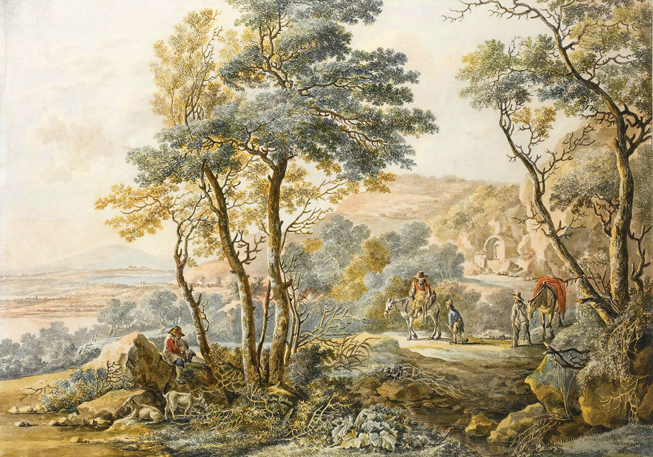₴ Репродукція краєвид "Італійський краєвид з мандрівниками" - Вінн Вінсент Янсс ван дер