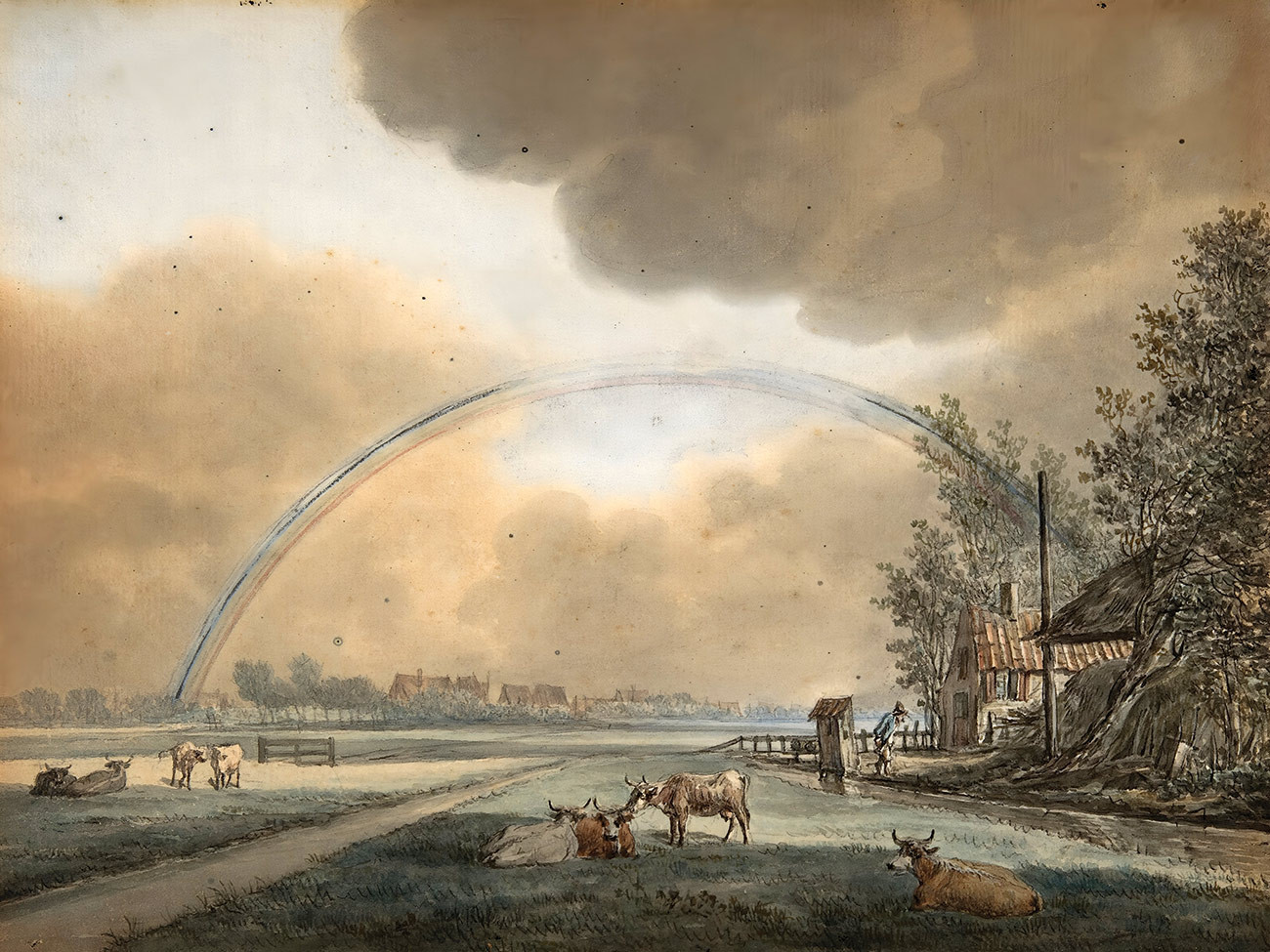 ₴ Репродукція краєвид "Краєвид з веселкою над фермою та віддаленим селом" - Вінн Вінсент Янсс ван дер